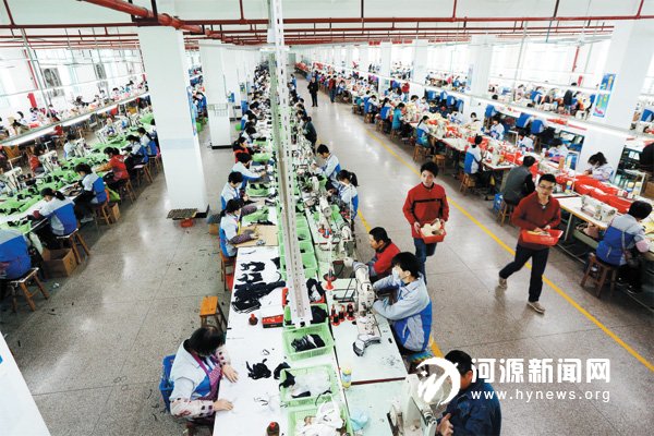 和平县连盈鞋厂生产线。