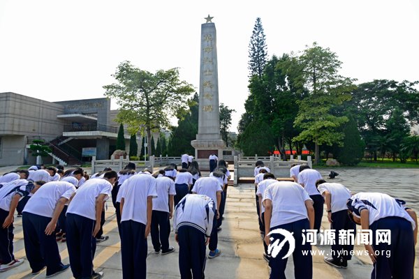 市二中的学生来到市革命烈士陵园开展“缅怀革命先烈向国旗敬礼”活动, 表达对革命先烈的崇高敬意,对新中国66 周年华诞的深深祝福。本报记者 朱冀 摄