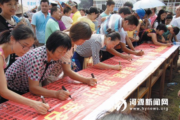 江东新区在古竹镇平渡村召开 2015 年南粤幸福活动周暨平渡村“弘德明约·村居善治”村规民约千人宣誓大会,逾千村民现场签名,并宣誓将严格遵守村规民约,共建幸福、文明平渡。