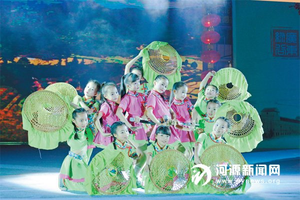 小朋友们表演《请到客家来做客》。