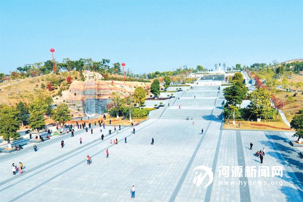 “除了美,这里的一景一物可都是分外考究的。” 笔者把自己所了解的向远方来客一一介绍:你看,公园西侧的那个塑石瀑布名为“河之源”,高约十五尺,于是有“河源之水天上来,飞流直下十五尺”的美誉。瀑布所在的山头叫“龙头山”。以前这里是一处砂石密布的荒坡,为了改变曾经荒凉的面貌,市城管局在这里种植了生命力顽强的市花勒杜鹃,营造了 “龙头山上红一角”的亮丽景观。目前,公园里种植有100多种花树,一年四季都能赏花。