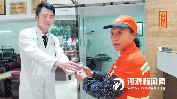昨日,记者来到位于市区长安街金碧花园酒店的福彩站点,这是市区105 家爱心驿站中的一家。店老板是个30 出头的小伙子,叫钟日考。他告诉记者,去年9月份,当他看到市文明办、市城管局、河源晚报社共同发起的“爱心驿站”活动时,第一个想法就是要报名,他说,经常看见环卫工阿姨在门外的马路上打扫,不管是烈日炎炎还是下雨天,没有一天间断。有时见天气太热,钟日考和妻子都会叫这位“熟悉” 的环卫工阿姨进店里来歇歇脚。