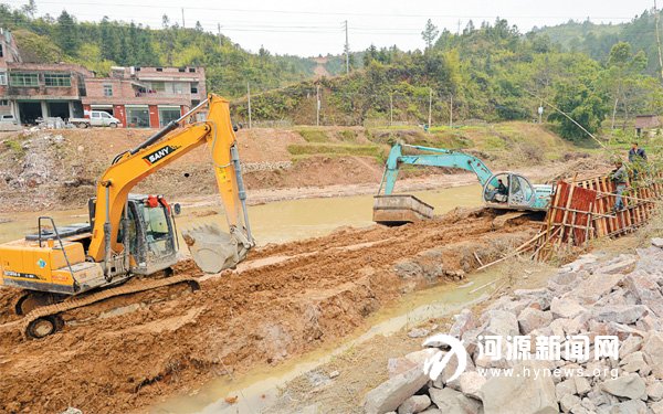 近日,记者在和平县优胜镇优胜河道看到,虽然天气寒冷,但河道里一片繁忙的景象,几台挖掘机正在紧张有序地清淤疏浚,一批工人正在修建河道护岸堤。据了解, 2016 年度和平县规划治理河长89.5 公里,规划总投资1.53 亿元,主要建设内容包括新建堤防长度4.9 公里、加固堤防长度2.9 公里、护岸长度53.2 公里及河道清淤疏浚长度 73.5 公里。