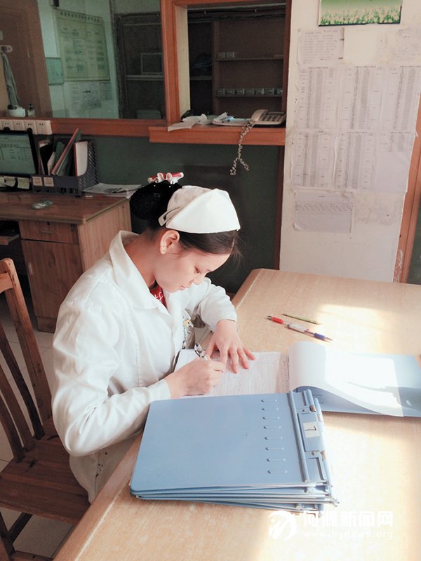 钟倩正在写护理记录。