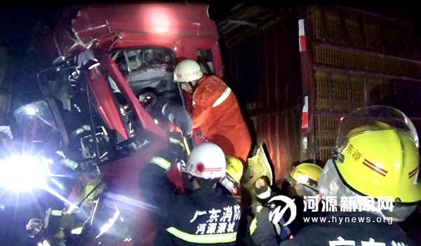 日前,梅河高速黄村往市区方向发生连环相撞事故,导致两人被困。东源消防中队迅速赶往现场处置,到达现场后,消防官兵发现,一辆载有鸡笼的大货车因刹车失灵与前车发生碰撞,导致4 车连环相撞,消防官兵利用液压剪对变形的车头进行破拆。很快,龙川消防中队赶到现场增援,经过近4 个多小时的奋力营救,消防官兵成功救出两名被困人员。