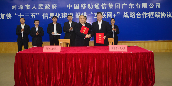 昨天,河源市政府与中国移动广东公司签署《加快“十三五”信息化建设,推进 “互联网+”战略合作协议》。