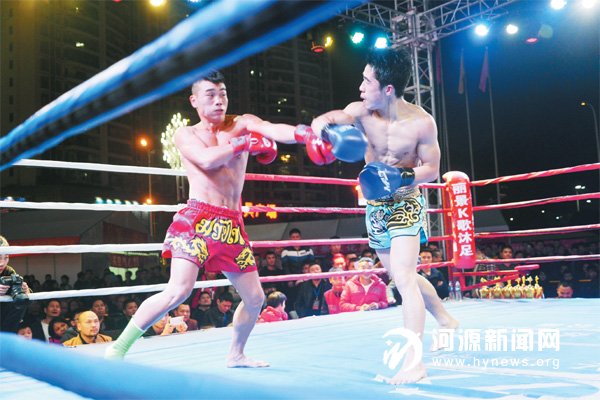 9日晚,由河源市武术协会同兴搏击俱乐部主办的第二届“龙战河源”2016万隆杯中泰职业拳王争霸赛(河源站)在市区万隆城举行。记者在现场看到,比赛现场座无虚席,就连场外也围满了观众。此次比赛共有来自中国和泰国的20名职业拳手参加,共分为10 个场次。值得一提的是,6名来自河源本土的拳手有4名在比赛中胜出,在家乡人民面前一展实力。另外,此次比赛还邀请了中国重量级泰拳第一人、80公斤级世界冠军李宝明担任形象大使,宣传和推广拳击运动。