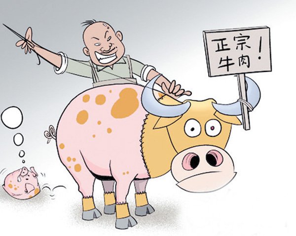 据《都市快报》1 月11 日报道,牛肉和猪肉价格悬殊,受暴利驱使,少数肉贩动起了歪心思,通过添加硝、牛肉精、胭脂红等将猪肉制成“牛肉”,甚至做起“手术”,将猪肉拼接在牛腿上对外出售。1 月6 日,安徽明光市警方破获一起重大生产、销售假牛肉案件,涉案9 万余元,犯罪嫌疑人华某某夫妇已被刑拘。