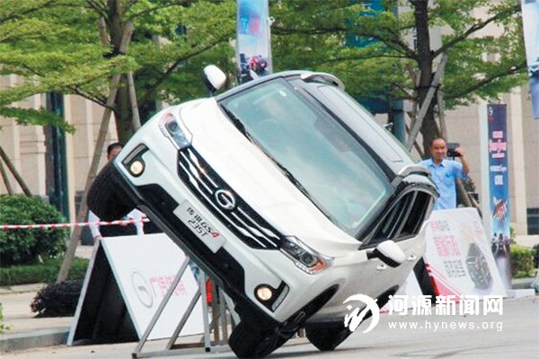 车手驾驶广汽传祺GS4 235T 进行超牛单边飞行表演。