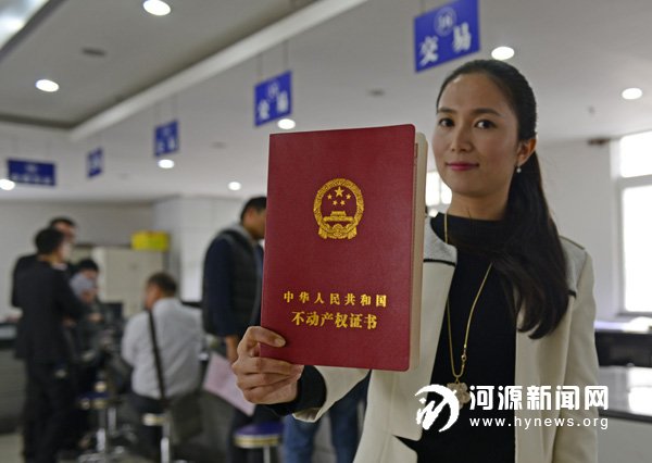 在登记中心里,邱昙雯大方“秀”出自己的不动产权证供记者和旁观市民拍照。记者看到,大红色的证书封面印着“中华人民共和国不动产权证书”字样,证书中标注了权利人、共有情况、坐落、不动产单元号、权利类型、权利性质、用途、面积、使用期限以及权利其他状况说明等多项具体信息,在登记机构处盖有“河源市国土资源局不动产登记专用章”。
