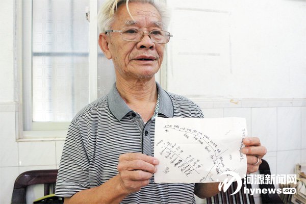 何宏周手绘当年从河源行船至龙川老隆历经的地点及险滩图。