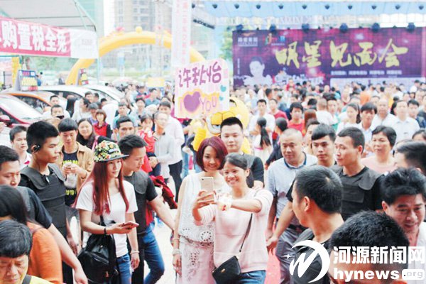 庆典活动现场人潮涌动,歌迷与许秋怡开心合影。