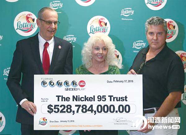这对夫妇于去年一月份和另外 两对夫妇一起中得强力球15.84 亿美元,约108亿人民币,约是现在 中国第一巨奖5.7亿的20倍。