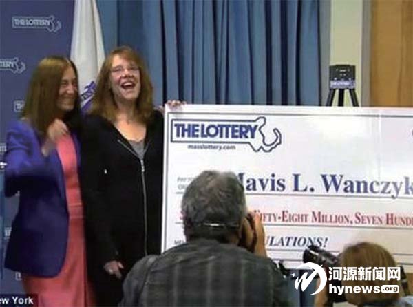 本报综合消息 据美国媒体消 息,获得美国强力球彩票7.587 亿 美元(约合人民币50.54 亿元)巨奖的 幸运儿8 月24 日晚现身领奖,是名 叫玛薇丝·万齐克(MavisWanczyk)的 53 岁女性。
