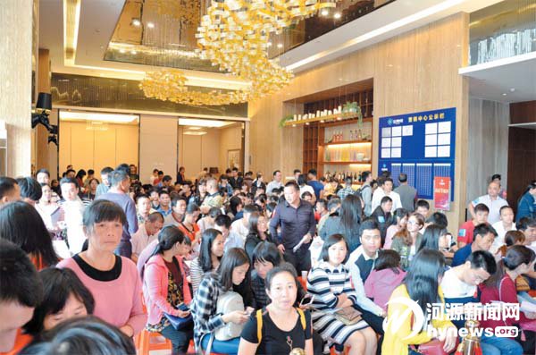 为了保证秩序,确保每 一个环节公平公正,现场工 作人员严格审核了每一位 客户的信息。当日上午8 时,所有客户均已到场排好 队等待项目开盘。随着摇 号仪式开始,每10组一批次 进入选房区选房。与此同 时,现场气氛随之升温,等候 区、选房区、签约区……各个 区域人头攒动,选房区一声 声“恭喜售出”争先传出,当 天448 套房源有426 套销售 出去。