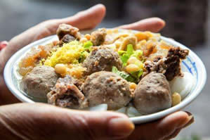 讲起潮汕地区,大家的第一反应一定是牛肉丸。而很多广东人都会联想到周星驰电影中那颗“当乒乓球打”的牛肉丸,足见手打牛肉丸有多弹牙!当然,除了有名的潮汕牛肉丸,粤东另一边厢——河源、梅州的客家肉丸也是鼎鼎有名,地方风味尤为突出。以精猪肉(或放鸡、鸭、牛肉)和番薯粉为原料手打成肉丸,口感极为爽脆,连当地老饕都会忍不住说句:“好好食”!所以来到粤东,不只要学会几句潮汕话、客家话,更要带上几款不同的肉丸送给亲朋好友,一起品尝独特的粤东风味。