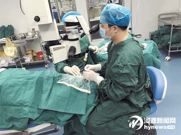 河源光明眼科医院医师为患者进行角膜移植手术。