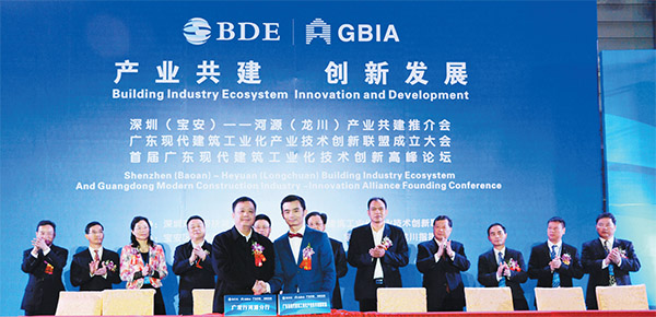 2016 年 12月,广发银行河源分行与广东现代建筑工业化产业技术创新联盟签订了100亿元的银企合作协议,以全力支持我市龙川建筑工业化的发展。(资料图)