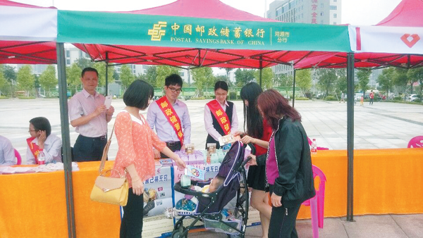 邮储行员工向市民普及金融知识。