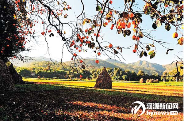 “墙头累累柿子黄,人家秋获争当 场”,这是陆游在《秋获歌》里所描绘的 秋季景象,用在深秋的宣威西泽柿子村 再恰当不过了。弯曲的老树上,绿叶已 经逐渐凋零,留下黄灿灿的柿子迎风摇 曳,坠坠胀胀。很多人家院落里竹垫铺 地,早已铺满了收获的柿子……成为这 个小村庄色调明晰的风景。