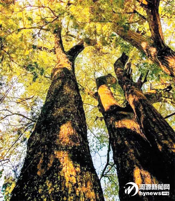 这个季节来醉山野的人除了感受她 的山水风光外,多半是冲着她变幻的色 彩而来,层层的山峦生长着各种各样的 古树。每到霜降前后,树叶开始层层变 化,由青转黄,由黄变红。而变换的步伐 不尽相同,往往一棵树上会同时出现金 黄、橘黄、橙红等多种颜色,五彩斑斓,层 林尽染。