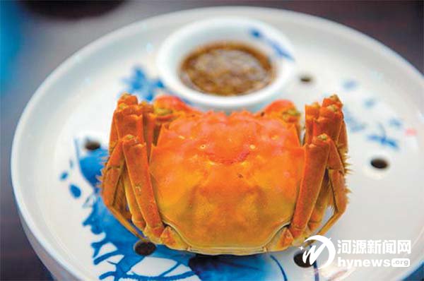 蒸熟后的溱湖簖蟹,色泽金黄, 块头大肉质嫩,最重要的是蟹黄、蟹 膏都超多,吃起来满齿鲜香,特别得 过瘾,我们不但在当地吃,临走还一 人一箱买了带回家吃。