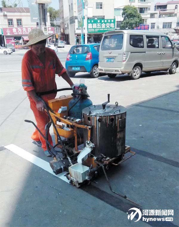 工作人员正在路面划停车位。