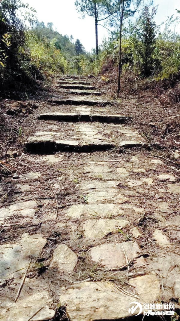 如今,和平青州、热水境内还有保存完好 的富豪一掷千金而重修的古驿道。最近,记 者一行来到这段古驿道,山上绿树葱茏,山谷 云雾缭绕,弯弯的古道一直蜿蜒于山脊密林 尽头,沿着古道石级缓缓而上,荆刺丛生的杂 草不时淹没鹅卵石路面。