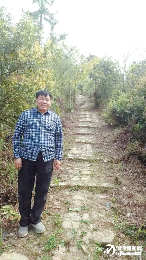 这一年他女儿要成婚,远嫁龙南县城,为 让女儿体面,加上想恢复青州赣粤古驿道,他 一掷万金,将大湖经过青州,再至热水南湖的 古驿道重新修缮,用青石板将斗峭的山坡铺 就石级,全线修复鹅卵石路面,在阿髻缺山岭 修造茶亭驿站,设有房间、廊厅、厨房、马厩, 方便过往客商。