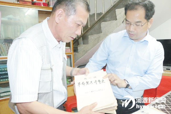 ( 南岭镇委书记钟宇雄(右)在接受捐赠时表示,将让这一珍贵的文稿发挥更大作用 )