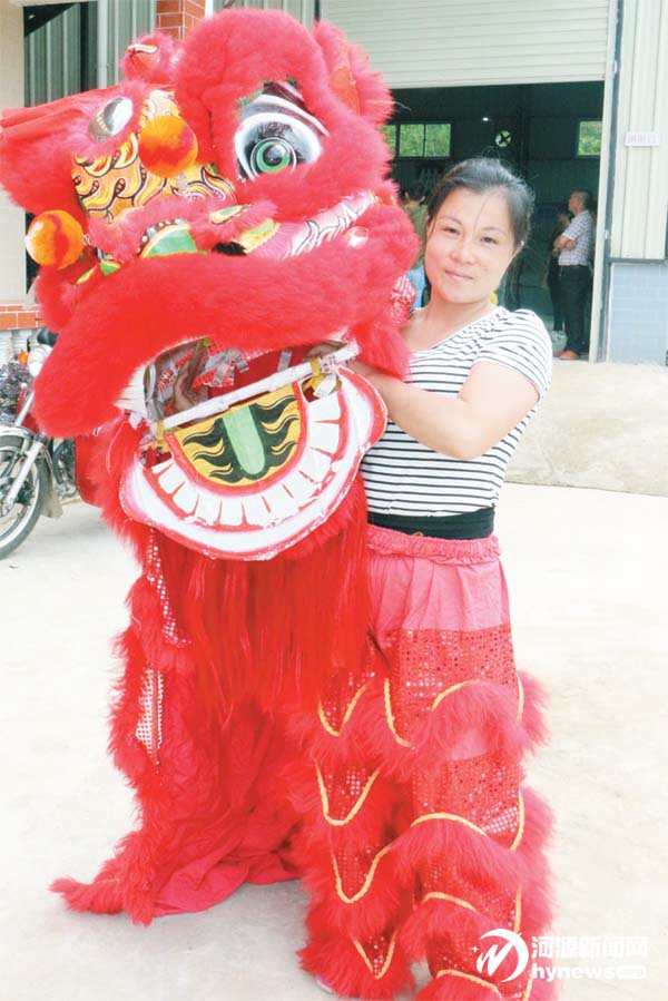5 月30 日,是一年一度的端午节,她还跟 双狮笛班驱车40 多公里,到邻市五华华阳镇 表演,她跟丈夫黄远洋骑摩托车花了一个多 小时才赶到。“一般村民知道我会舞狮后,都 用敬仰的眼神看我。”说起自己的舞狮技能, 邹必群一脸的自信。