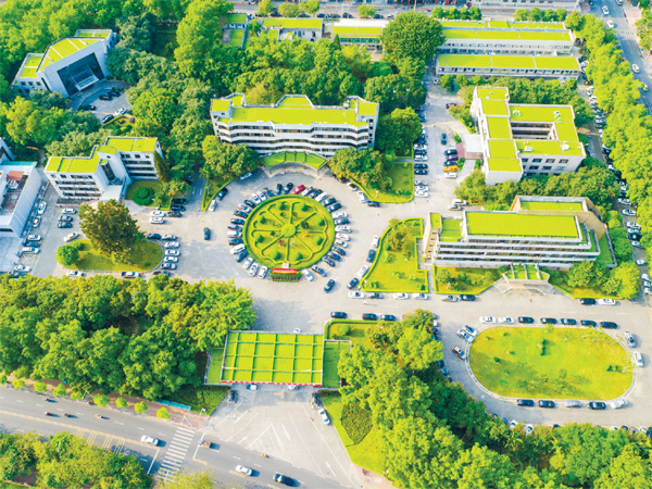 市政府大院屋顶绿化工程成效明显。