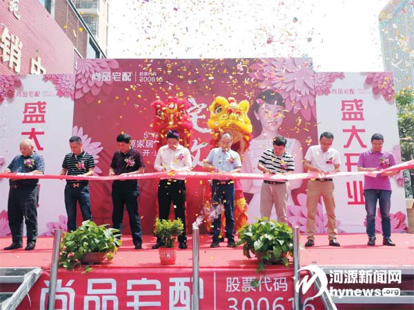 在激情四射的开场舞与嘉 宾致辞之后,尚品宅配总经理 陈俊、江西商会常务副会长汤 晓宇、深圳市禾花物业董事长 刘国强、河源市骏英装饰总经 理闵长明、深圳市新南股份有 限公司董事刘日明、尚品宅配 副总经理邹赤峰等人共同上台 为河源旗舰店开业剪彩。