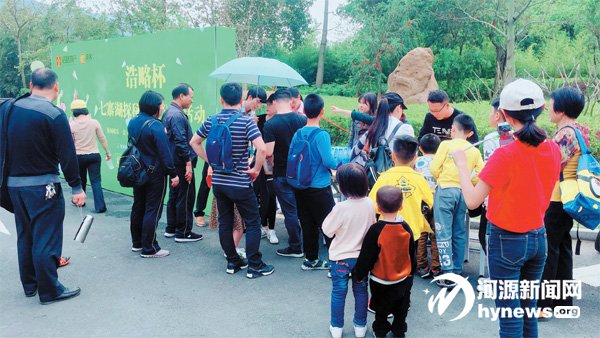 浩略地产组织七寨湖探秘寻宝徒步活动报名现场。