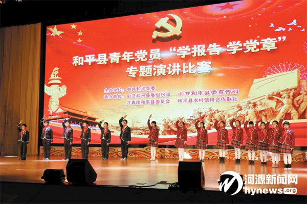2017年,阳明二小红领巾朗诵队参加共青团和平县委员会主办的和平县青年党员“学报告学党章”专题演讲比赛的献词。