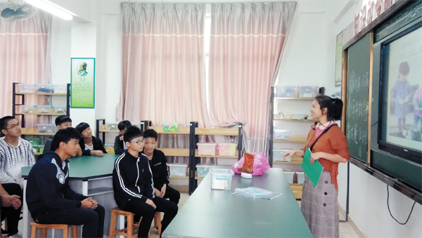 和平县龙湖学校的老师给科技兴趣班的同学上课。