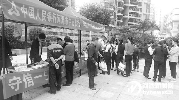10月20日,人民银行河源市中心支行联合建设银行河源分行、广东长鸿实业集团在市区长鸿花园开展“弘扬诚信文化共建和谐社会”2018年征信知识进社区活动,活动旨在通过深入社区为市民普及金融知识,提高市民金融与诚信素养。