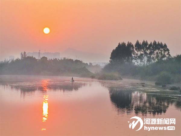 清晨,一个渔夫带上捕鱼的工具,划着小船,迎着第一缕阳光,穿梭在新丰江庄田桥附近的江边,徜徉在母亲河,为美好的一天,撒开了第一 张网,撒下了希望,这是客家儿女热爱生活、勤劳勇敢的美好写真。