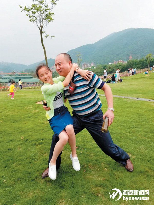 曾张粤湘给记者看了一张和父亲曾立秋在深圳东部华侨城茶溪谷风景区的合照,画面中,爸爸曾立秋身体前倾、双手摆成超人的模样,而曾张粤湘坐在爸爸的腿上搂着他的脖子,笑得十分开心。