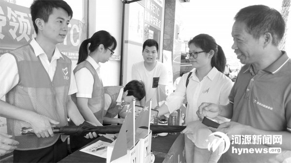 连日来,工商银行河源分行联合粤通卡河源营业部在市区坚基购物中心广场安装点等多处开展ETC免费安装便民服务活动。记者了解到,该行派出150多名志愿者在景区、停车场等人员密集地区为市民免费安装ETC,受到了市民的欢迎。