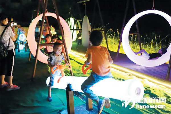 在微风拂面的夜晚,孩子大人,一同在心语花海里嬉笑追逐,和夜精灵共舞,尽情地释放自我。现场,游客还能通过展板学习了解萤火虫的生长旅程,一起动手制作森林草本植物标本、植物敲拓染,保存记忆留下纪念。活动期间,主办方还举办了两场萤火虫放飞仪式,放飞梦想感受最生态的浪漫仪式。“萤火虫漫天飞舞,仿佛置身于梦幻的童话世界中,太美了!”专程从广东赶来的周先生带着女儿在萤飞谷中追逐着“暗夜精灵”。他说,白天的蝉鸣、夜晚的萤火虫,以及大自然的美好,是自己儿时关于夏天的记忆。