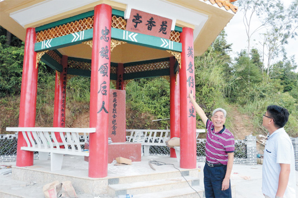“说方湖,道方湖,方湖人民系优秀,苑香烈士人敬仰……”如今这首歌谣在紫金县柏埔镇方湖村传唱。年近古稀的龚苑香烈士后代龚作忠老人每每唱起这首歌,心里不由地受到教育。今年7月,为纪念烈士而建的苑香亭动工修缮,龚作忠一有机会就从市区乘车赶回老家,了解修缮情况。昨日,他告诉记者,10多年前,他们筹资建了这座苑香亭,如今,政府高度重视,重新修缮苑香亭,很受感动,他更希望,烈士精神能够代代相传,让更多的方湖村民受到教育。