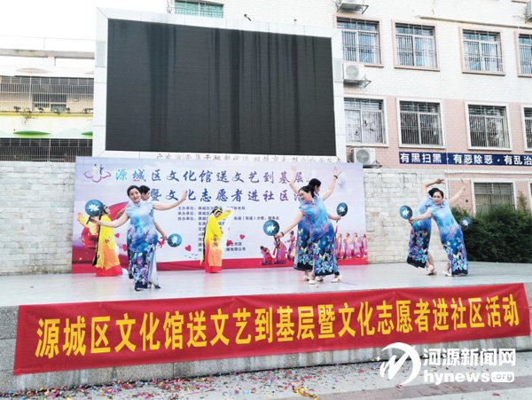 18日,2019年源城区文化馆送文艺到基层暨文化志愿者进社区活动走进新江街道卫星社区,这是30场活动中的首场活动,拉开了源城区此次送文艺到基层、送文化进社区行动的帷幕。