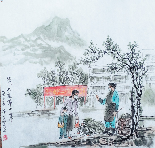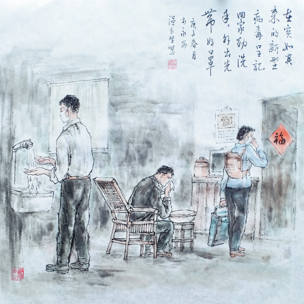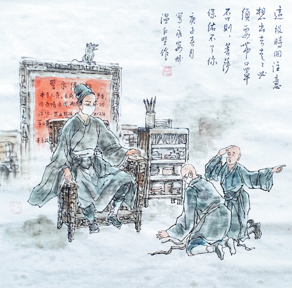 国画《抗疫组画》温仁坚/作