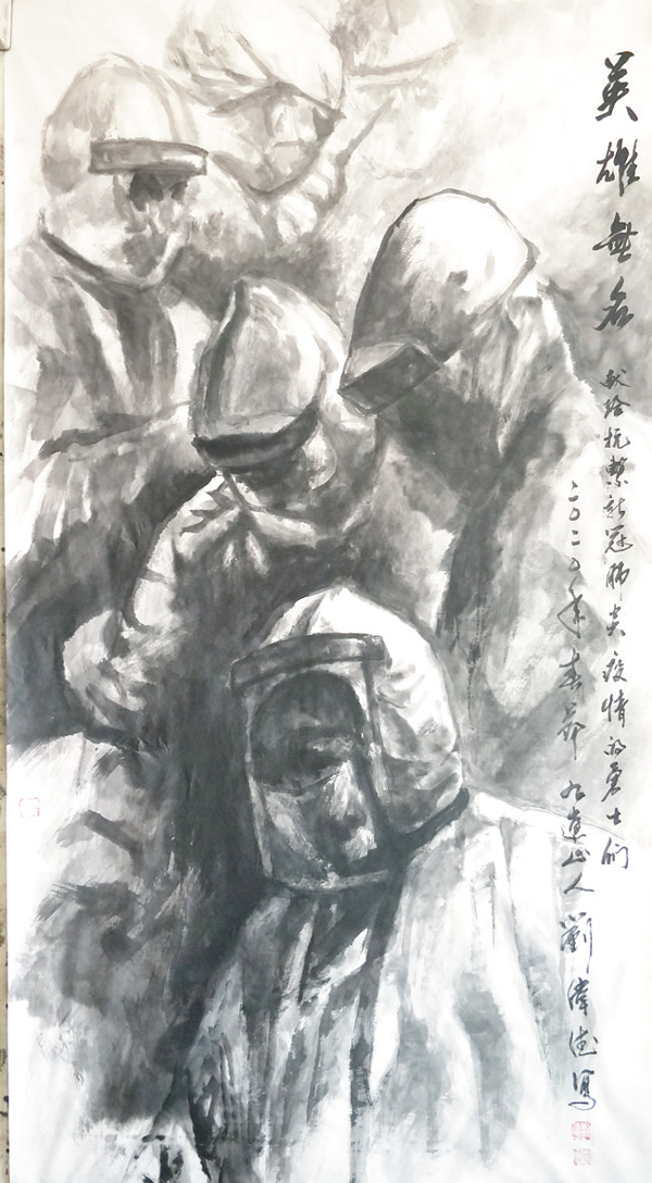 水墨画《英雄无名》(180cm×90cm)刘伟德/作