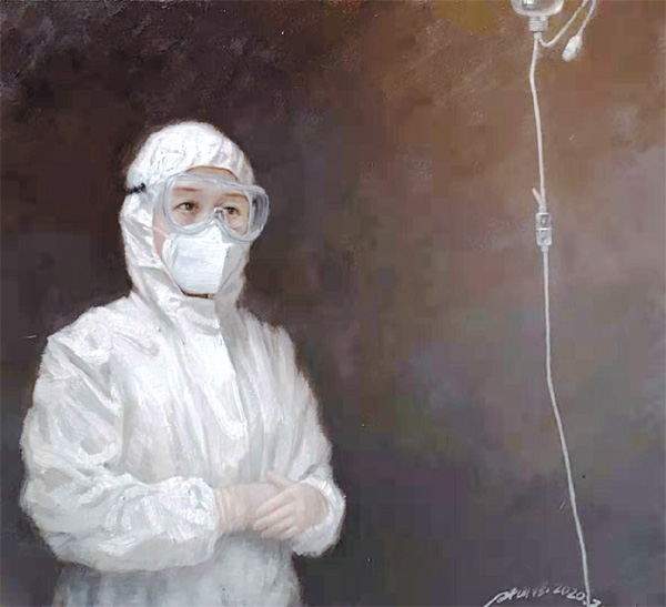 油画《守护生命线》(80cm×88cm)叶国强/作