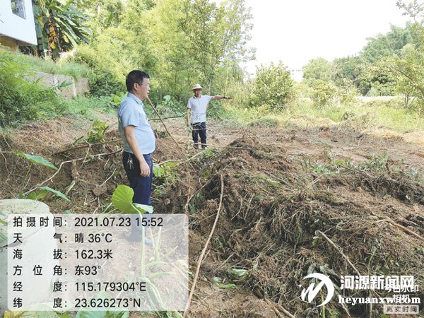 黄俊锋(左一)组织开展撂荒地复耕复产。