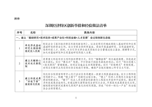 1980年8月,党和国家批准设立深圳经济特区。40多年来,深圳经济特区坚持解放思想、与时俱进,改革不停顿、开放不止步,在体制机制改革中发挥了“试验田”作用,在对外开放中发挥了重要“窗口”作用,成为全国改革开放的旗帜和标杆。为深入贯彻落实习近平总书记在深圳经济特区建立40周年庆祝大会上的重要讲话精神,更好发挥深圳经济特区在改革开放新征程中的引领示范作用,我们在总结深圳经济特区已复制推广经验的基础上,进一步梳理形成了党的十八大以来深圳经济特区创新举措和经验做法。现就有关事项通知如下: