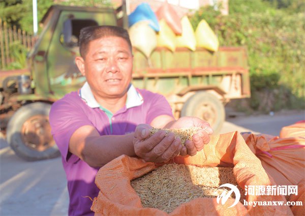 收割结束后,广东兆华种业有限公司相关负责人还到种植户家中,现场收购他们所种植的稻谷。接过售卖稻谷的钱后,当地村民乐开怀。