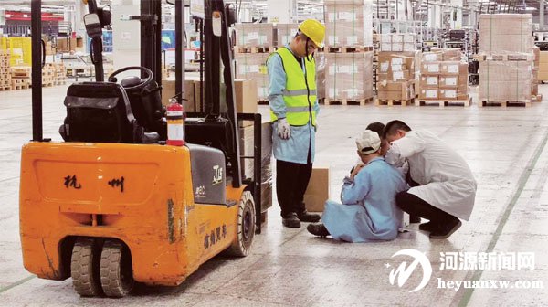 市市场监管局联合高新区分局在中兴通讯(河源)有限公司开展特种设备安全知识宣传进企业暨特种设备专项事故应急演练活动,通过现场播放特种设备安全警示视频、讲解特种设备使用单位主体责任落实情况、发放特种设备安全知识宣传资料等形式,推进安全生产由企业“被动接受监管”向“主动加强管理”转变,隐患排查治理由“部门行政执法为主”向“企业日常自查自纠”转变,提升企业本质安全水平,实现企业安全发展;同时,开展了场(厂)内专用机动车专项应急演练,现场模拟叉车作业时货物不慎滑落碰撞到叉车作业监护人员,叉车司机立即拨打救援电话,公司医务人员第一时间响应,对受伤人员进行初步处理。